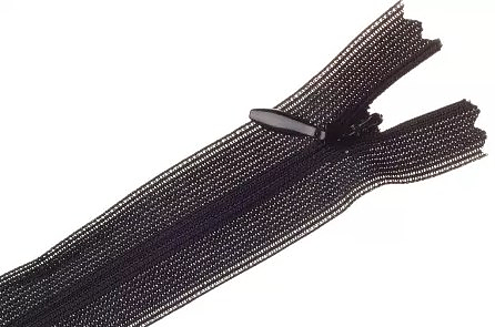 Неразъемная молния. Применяется в детских и женских изделиях из легких  тканей. Звенья застежки расположены с изнаночной стороны молнии и в застегнутом виде не видны.